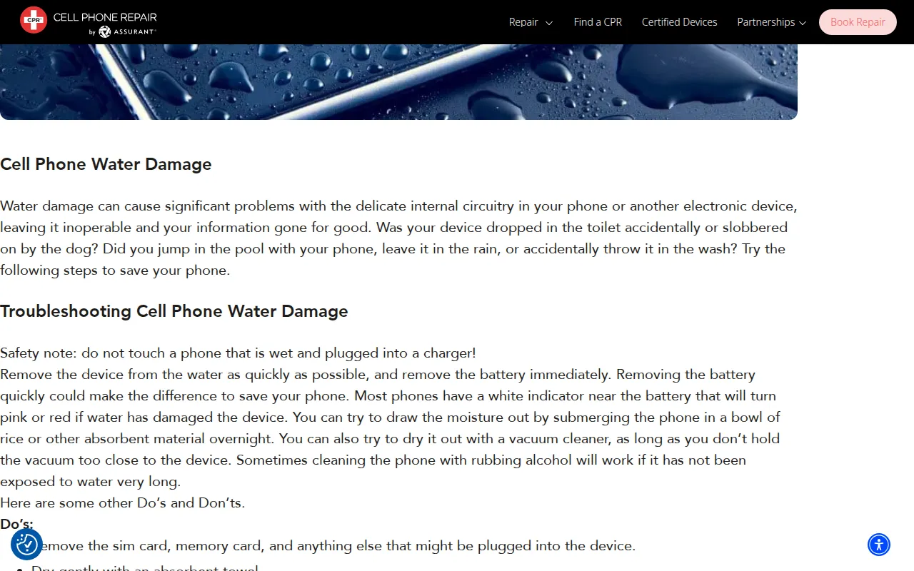 CPR Cell Phone Repair instructs customers to "draw the moisture out by submerging the phone in a bowl of rice or other absorbent material overnight" and also recommends drying it "with a vacuum cleaner."