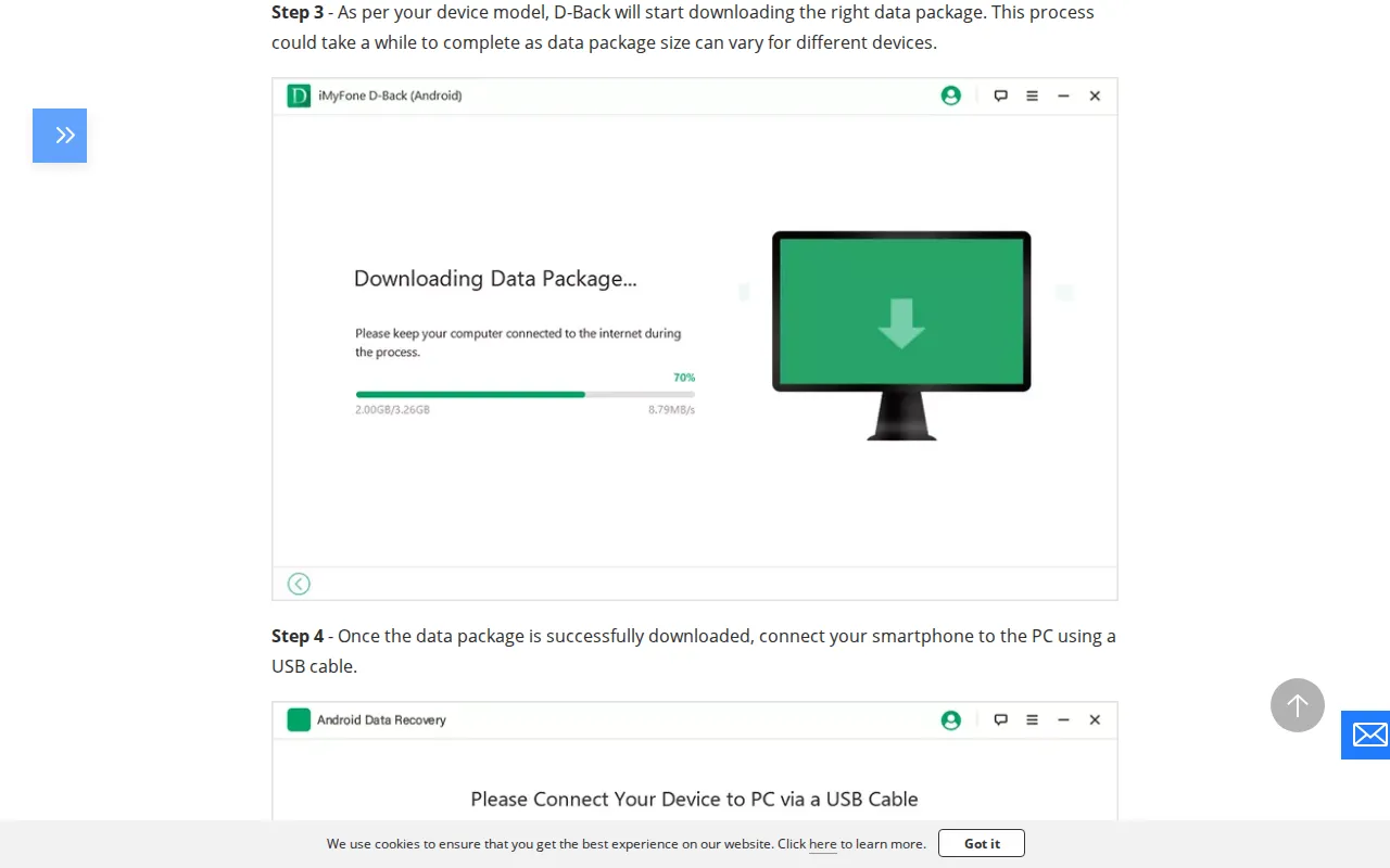 “Once the data package is successfully downloaded, connect your smartphone to the PC using a USB cable.”