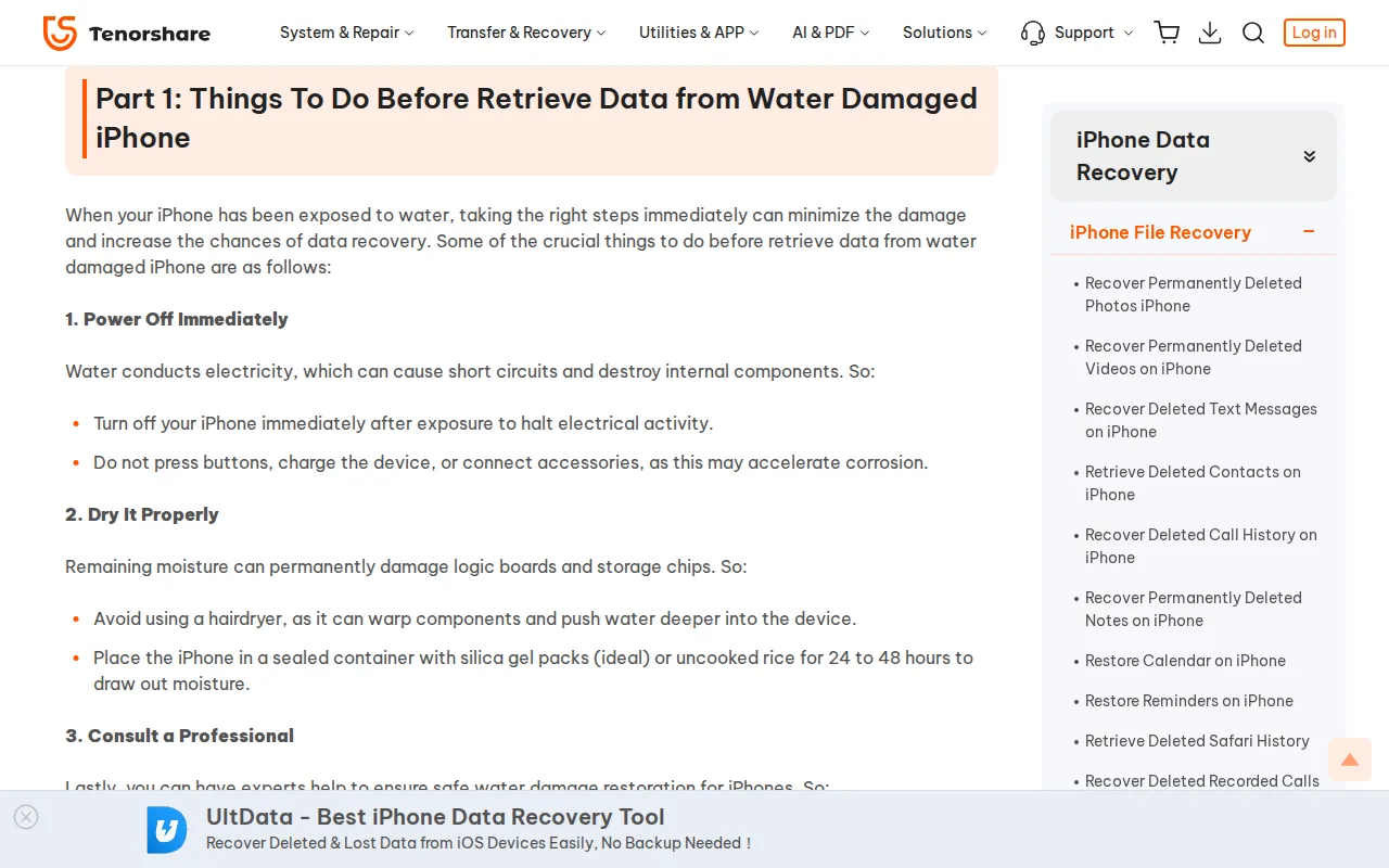 | Tenorshare: "Place iPhone in rice for 24-48 hours" | Apple (2024): "Don't put your iPhone in a bag of rice. Doing so could allow small particles of rice to damage your iPhone." |
