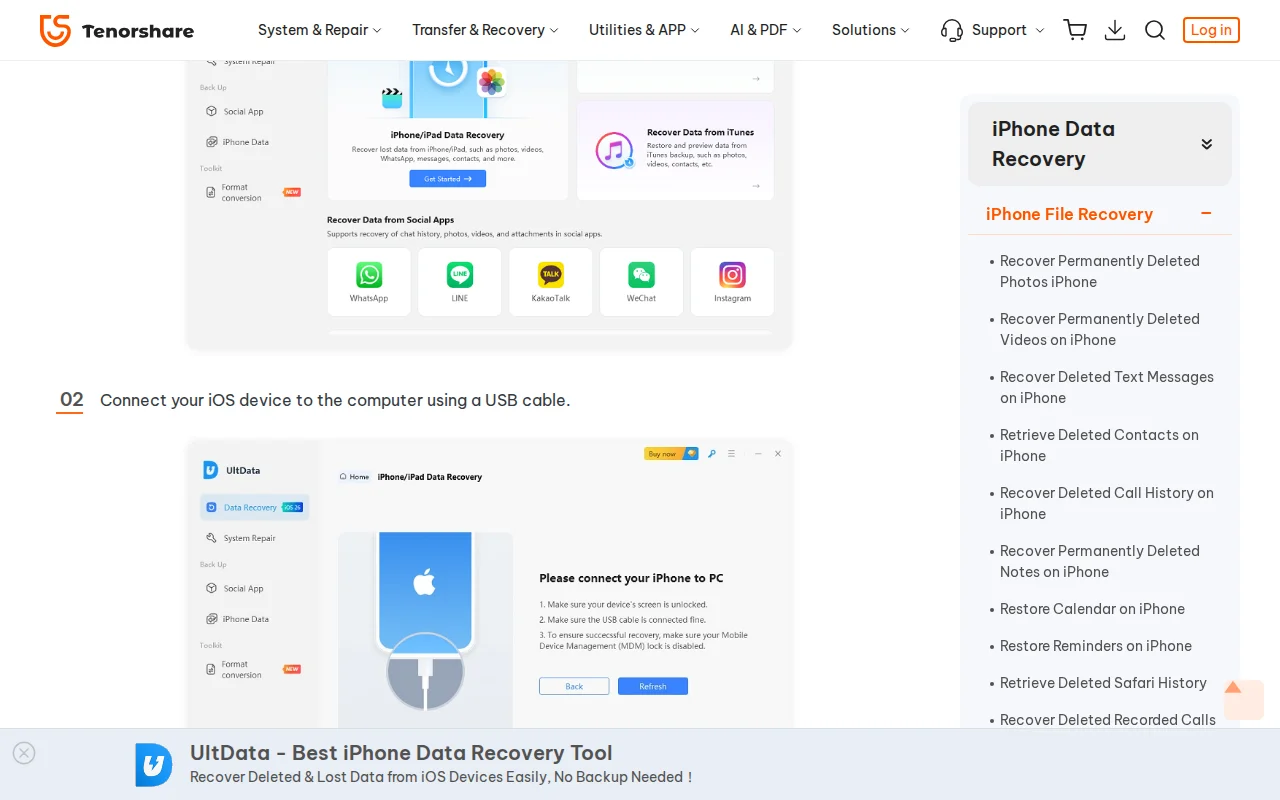 “Water Damage is listed as a supported scenario under Recover Unlimited iOS Data alongside Broken Screen and Damaged Devices.”
